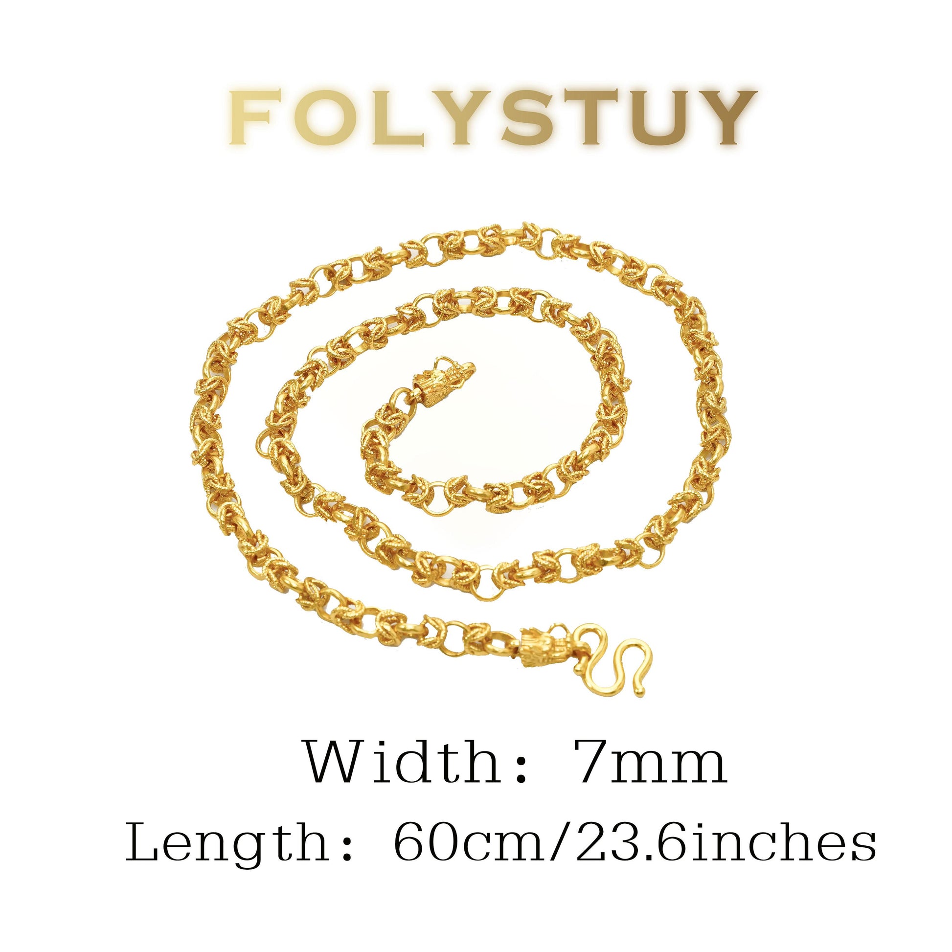 【FOLYSTUY(YNY07)】24k gold filled 7mm-Wide, 23.6-Inch-Long Dragon Bone Necklace